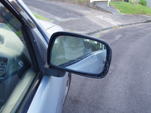 Now I own a car. And the same thing happened to me. Since a few months ago, I started getting this annoying web. I've never really thought about it too much. Just wiped it off when I saw it and it kept coming back. One day, I had a passenger and we started talking about it. I told him there must be a spider living behind my mirror and it would be the reason why the web always comes back on the same mirror and sometimes it could be as quick as overnight. My passenger is a smart guy. "Maybe it is a double side mirror. The spider is looking at us right and laughing about our conversation". That scares me. It is a spy.